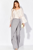 Брюки женские – буткат – новинка бренда Pelican. Брюки женские с высокой талией, клеш от колена, выполнены из трикотажной смешанной ткани кашкорсе (вискоза, полиэстер, нейлон, эластан). Брюки лапша представлены из смешанной ткани в рубчик, которая имеет ряд преимуществ -  не скатывается, не линяет, не мнется, быстро сохнет, а после многократных стирок не линяет и не деформируется. Также состав материала придает изделию мягкость, прочность, ткань хорошо тянется, а классический прямой крой и небольшой клеш книзу от колена добавит варианты для создания множества образов. Отлично сочетаются с водолазкой в тон из новой коллекции, можно носить как домашние, что безусловно, будет удобно и практично. Модель в модном сине-сером цвете и молочном, с резинкой на талии. Брюки клеш дают возможность составить прекрасное дополнение не только домашнему образу, но и деловому. Подчеркнёт вашу индивидуальность на работе и отдыхе, в офисе или на учебе. Брюки из трикотажа подходят в качестве повседневной базовой одежды для женщин, девушек и подростков. Наденьте брюки с рубашкой или пиджаком и ваш образ будет оригинальным, женский трикотаж универсален и удобен для ежедневной носки. Устройте фотосессию с семьей, подобрав модели для близких из тематической зимней коллекции Пеликан.