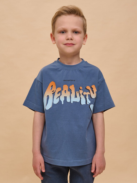 Детская футболка для мальчика. Комфортная майка умеренного оверсайз-объёма со спущенным плечом подарит ребёнку свободу движений. Вырез горловины обработан эластичной рибаной (ткань в рубчик) — она отлично держит форму, не растягивается, при этом ребёнку удобно надевать и снимать футболку. Изделие неприхотливо в уходе. Футболка детская с принтом в актуальном готическом стиле по переду и спинке. Надпись переводится: «ещё один день в реальности». Принт эластичный и устойчивый, хорошо переносит многочисленные стирки. В составе ткани 100% хлопка — майка мягкая, воздухопроницаемая, приятная на ощупь. Футболка для мальчиков выполнена в универсальной расцветке, её легко сочетать с различными брюками, джинсами. Детские футболки с принтом подходят как для маленьких мальчиков, так и для подростков. Оверсайз-футболка для мальчика подходит для любого времени года, её можно носить как летом, так и в холодное время года в качестве среднего слоя одежды. Помните о правильном уходе за изделием: рекомендуется стирать при температуре не выше 30 °C, без предварительного замачивания, с изнанки. Это поможет сохранить качество и цвет футболки на длительное время.