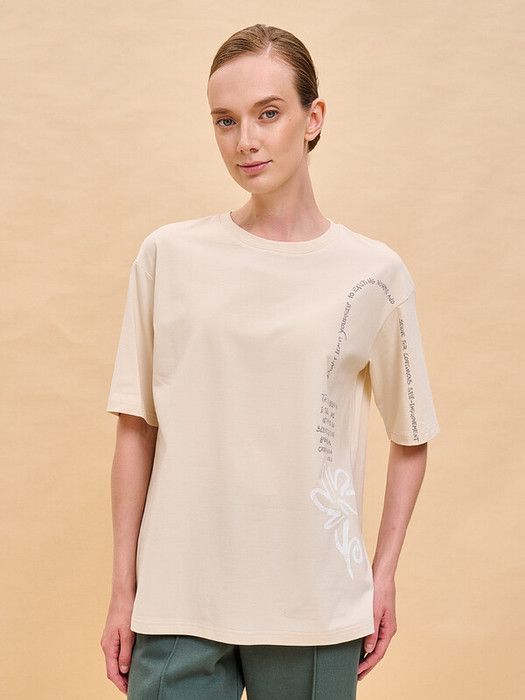 Женская футболка с принтом большого объёма с коротким прямым рукавом. Вырез горловины обработан эластичной рибаной — не растягивается и сохраняет отличный внешний вид надолго. Изделие неприхотливо в уходе. Хлопковая футболка женская украшена модным принтом в виде «текучих» цветов + «текучие» шрифты. Надписи переводятся: «не ограничивай себя существующими нормами и стремись к постоянному самосовершенствованию», «будущее принадлежит тем, кто не боится выходить за установленные рамки и создавать свой собственный мир». Принт мягкий и устойчивый, без проблем переносит многочисленные стирки. В составе ткани преобладает высококачественный хлопок — майка мягкая, воздухопроницаемая, приятная на ощупь. Футболка с надписями выполнена в универсальном цвете, который легко сочетается с различными брюками, шортами. Футболки с принтом женские подходят также девушкам, девочкам-подросткам. Хлопковая футболка овресайз идеальна для любого времени года, её можно носить как летом, так и в холодное время года в качестве среднего слоя одежды, а также на спорт. Помните о правильном уходе за изделием: рекомендуется стирать при температуре не выше 30 °C, без предварительного замачивания, с изнанки. Это поможет сохранить качество и цвет футболки на длительное время.