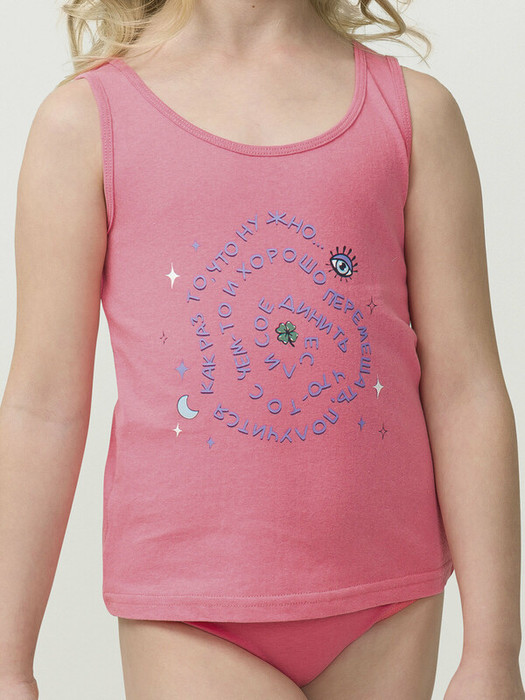 Детский комплект белья для девочки. В набор входит бельевая майка на бретелях из 100% хлопка и трусы слипы из хлопка с эластаном. Пошив высокого качества, аккуратные швы, которые не доставят дискомфорт для ребенка. Трусики и майка на бретельках идеально впишутся в гардероб девочек как базовое детское нижнее белье. Удобная и практичная модель майки на лямках для детей подходит для повседневной носки дома, как одежда для сна, в детский сад, для занятия спортом. Трикотажные детские трусики слипы с эластичной резинкой по талии надежно держатся на теле, не скручиваются, не закатываются и не сползают, а дышащая ткань позволяет избежать натирания нежной кожи.
