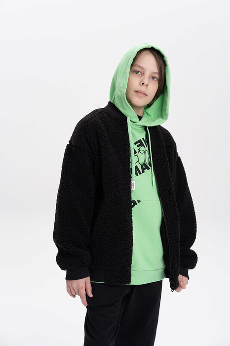 Трикотажный бомбер из бербер-флиса. Такой флис еще называют тедди, чебурашка, барашек. Мягкая кофта оверсайз застегивается на молнию. По переду два глубоких прорезных кармана. Воротник, манжеты рукавов и манжет низа выполнены из декоративной рибаны. Плюшевая толстовка из искусственного меха утеплена флисовым подкладом, благодаря чему ее можно носить в прохладную погоду весной и осенью. Универсальные цвета подойдут для повседневной носки в школу и на прогулку. Широкая размерная линейка подойдет как малышам так и подросткам.