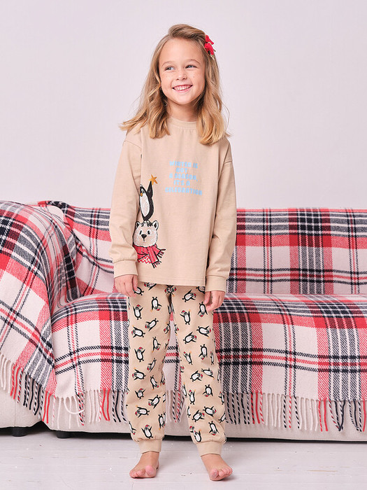 Красивая и уютная пижама для девочки. Пижама для девочки со штанами выполнена из 100% хлопка — идеально для детской одежды! Пижама для девочки продростка приятна на ощупь, прекрасно пропускает воздух, позволяя коже ребёнка дышать. При этом в пижаме из хлопка ребёнку будет комфортно, даже если он сбросит одеяло во сне. Всё это обеспечивает комфортный и качественный сон. Джемпер и брюки среднего объёма, плечо немного спущено, рукава широкие и свободные — в пижаме очень удобно спать, играть. Широкая и мягкая резинка в поясе не перекручивается и не давит. Манжеты и отделка горловины из эластичной рибаны — они не растягиваются, ребёнку удобно надевать и снимать пижаму. Перевод принта: "Зима-это не созон, это прзднование". Пижама для девочки новогодняя подходит для сна как дома, так и в детском саду — прекрасный выбор для вашего ребёнка! Новогодняя пижама для малыша станет замечательным подарком, который способен вызвать искреннюю радость у вшей дочки, внучки, сестренки, племянницы, оставив незабываемые воспоминания о любом празднике и принося массу удовольствия каждый день.