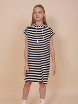Детское платье худи в полоску для девочки. Платье в спортивном стиле А-силуэта подойдёт для любого типа фигуры. Это идеальный вариант для летнего отдыха — благодаря капюшону нет необходимости в панаме, голову ребёнка не напечёт солнцем. Капюшон двухшовный, красиво и анатомически правильно садится по голове. Есть возможность регулировки капюшона шнуром. Платье-тельняшка — супертренд сезона! Платье умеренного объёма со спущенным плечом подарит ребёнку комфорт и свободу движения. Проймы с широкими притачными манжетами, они отлично держат форму, платье выглядит аккуратно и стильно. В боковых швах имеются карманы  — удобно пользоваться. Платье в полоску (полоска вытканная, не принт) украшено красивым принтом в ботаническом стиле по спинке. На принте изображены какао-бобы. Надписи переводятся: "природа", "шоколадное дерево", "вечнозелёное дерево", "какао-бобы содержат вещества, которые стимулируют выработку эндорфинов и серотонина (гормоны счастья)". Принт мягкий и стойкий, не боится частых стирок. За платьем легко ухаживать. В составе ткани 100% высококачественного хлопка — платье мягкое и дышащее. Изделие представлено в двух актуальных вариантах цвета: тёмно-синем и бордовом. Размерная линейка: 1 (86); 2 (92); 3 (98); 4 (104); 5 (110); 6 (116); 7 (122); 8 (128); 9 (134); 10 (140); 11 (146). Платье-худи укороченное идеально для девочек дошкольного и младшего школьного возраста, а также девочек-подростков. Подходит для детского сада, прогулок, отдыха, дома. Платье можно носить летом, а также весной и осенью (демисезон), зимой в качестве домашней одежды. Модное платье — стильный и практичный подарок дочери, внучке или сестре на любой праздник. Выбирайте нужный размер по таблице размеров на фото. Цвет товара на экране вашего устройства может отличаться от цвета изделия вживую.