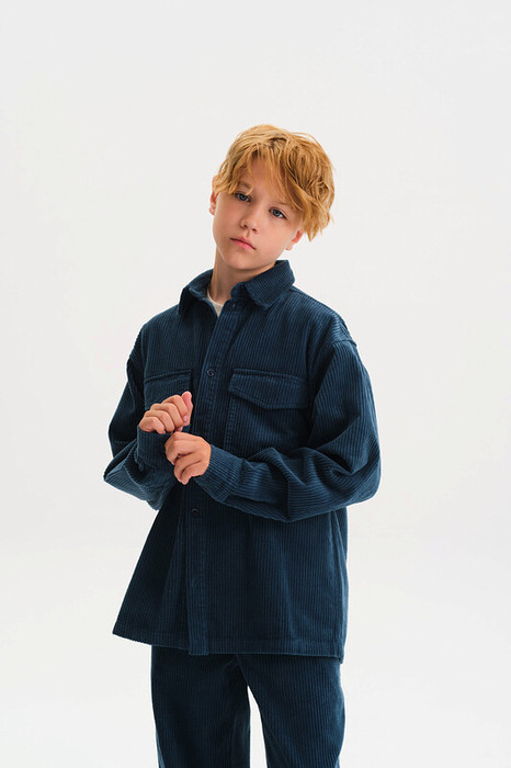 Рубашка из мягкого хлопкового вельвета с длинными рукавами. Ткань с красивым широким рубчиком приятна на ощупь и комфортна в носке. Прямой крой не сковывает движения. Спереди — застежка на пуговицы и два накладных кармана с клапанами. Манжеты на рукавах застегиваются на пуговицы, ширину можно отрегулировать. Рубашка отлично подходит для повседневной носки и легко сочетается с джинсами, брюками или юбками.