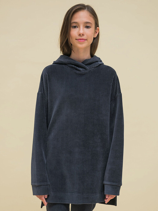 Модное худи для девочек. Велюровый джемпер в рубчик актуального оверсайз-силуэта со спущенным плечом подарит ребёнку комфорт и свободу движений. Худи с капюшоном с двумя швами, что обеспечивает анатомически правильную форму и комфортную посадку по голове. Спинка немного длиннее переда, по бокам разрезы — актуальные, стильные детали. Худи однотонное, без принта. Изделие неприхотливо в уходе. В составе ткани (трикотажный велюр) преобладает высококачественный хлопок — худи приятно на ощупь и великолепно пропускает воздух, давая коже ребёнка дышать. Благодаря эластану толстовка сохраняет отличную форму в течение продолжительного времени. Джемпер выполнен в универсальном тёмно-сером цвете. Его просто комбинировать с любыми брюками, легинсами, джинсами. В линейке представлены следующие размеры:  1 (86); 2 (92); 3 (98); 4 (104); 5 (110); 6 (116); 7 (122); 8 (128); 9 (134); 10 (140); 11 (146). Худи детское идеально для девочек дошкольного возраста, младших школьниц и девочек-подростков. Такой джемпер можно носить в детский сад, на прогулки, на отдых и дома. Худи без начёса оверсайз подходит для круглогодичного применения: летом, осенью, зимой, весной и демисезон. Это чудесный подарок дочери, внучке или сестре на Новый год и любой другой праздник.