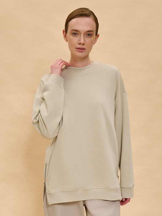 Свитшот женский без начеса. Толстовка расслабленного силуэта-кокон со спущенным плечом подарит вам комфорт и станет стильным дополнением гардероба. Спинка джемпера длиннее переда  — актуальный модный тренд. Манжеты, отделка горловины и низа изделия выполнены из эластичной широкой рибаны (ткани в рубчик). Она не растягивается, отлично сохраняет форму, при этом свитшот удобно надевать и снимать. Модель неприхотлива в уходе. Оверсайз свитшот  выполнен из плотного и приятного на ощупь футера — в составе ткани преобладает высококачественный хлопок, ткань дышит. Полиэстер помогает сохранить цвет и первозданный внешний вид надолго. Женский свитшот выполнен в универсальных цветах, который легко сочетать с любыми брюками, джинсами, юбками, платьями — можно создать много красивых образов. Толстовка декорирована небольшим объёмным принтом в виде первой буквы логотипа бренда. Стильная фишка модели — в боковых швах разрезы на металлических молниях. Однотонный оверсайз-свитшот — базовый элемент повседневного женского гардероба. Свитшот без начеса можно носить круглый год. Помните о правильном уходе за изделием: рекомендуется стирать при температуре не выше 30 °C, без предварительного замачивания, с изнанки. Это поможет сохранить качество и цвет свитшота на длительное время.