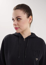 Жилет из футера для женщин. В составе ткани 96% хлопка — модель мягкая и приятная на ощупь. Благодаря эластану изделие сохраняет форму. Высокие разрезы по бокам обеспечивают комфорт в носке. По проймам со стороны плеча широкая подгибка, которая закреплена в плечевом и боковом швах. Она создаёт актуальную форму, капюшон при необходимости утягивается шнуром. Изюминка модели — широкая планка с оригинальной застёжкой на магниты. С таким жилетом вы сможете создать стильные многослойные образы. Подходит для разных типов фигуры.