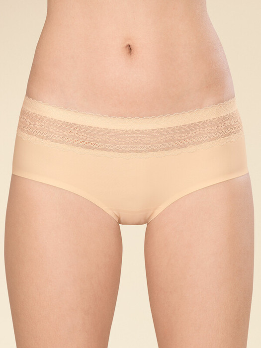 Женские трусы-шорты с низкой посадкой. Изготовлены по бесшовной технологии с минимум швов. Кромки по ноге и по талии подогнуты и приклеены, хлопковая приклеенная ластовица. Нежное геометричное кружево по линии талии высотой 5 см – не передавливает тело и не натирает кожу. Модель оценят те, кто ищет незаметное и невесомое белье на каждый день или особого случая.