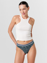 Женские трусы-слипы с низкой посадкой. Изготовлены по бесшовной технологии с минимум швов. Кромки по ноге и по талии подогнуты и приклеены, хлопковая приклеенная ластовица.  Нежное геометричное кружево по линии талии высотой 5 см – не передавливает тело и не натирает кожу.  Модель оценят те, кто ищет незаметное и невесомое белье на каждый день или особого случая.