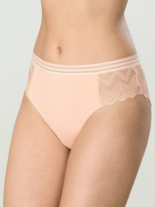 Женские трусы-слипы с высокой посадкой для влюбленных в красивый и активный образ жизни. Ткань с высоким содержанием хлопка и небольшим содержанием эластана. По линии талии мягкий принтованный эластик - не передавливает тело, не натирает кожу. Обработка по ноге эластиком для сохранения формы. Нежное геометричное кружево отражает тренд на умный дизайн.