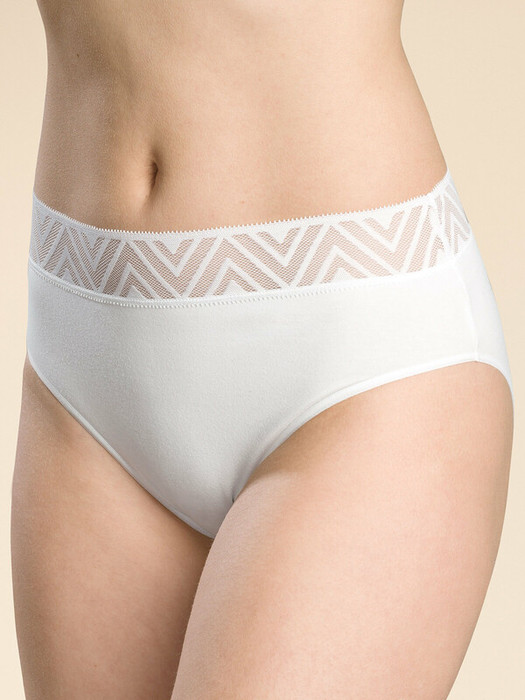 Женские трусы-слипы с высокой посадкой. Приятная на ощупь ткань с высоким содержанием хлопка и небольшим содержанием эластана – трусы сохраняют форму и не выцветают даже после частых стирок.  Мягкая широкая обработка по линии талии кружевным эластиком – не вызывает дискомфорта и не передавливает тело. Нежное геометричное кружево актуально в этом сезоне. Модель подчеркивает изящество фигуры и создаёт комфорт. Идеально подходят для повседневной носки, для сна и для романтических встреч.