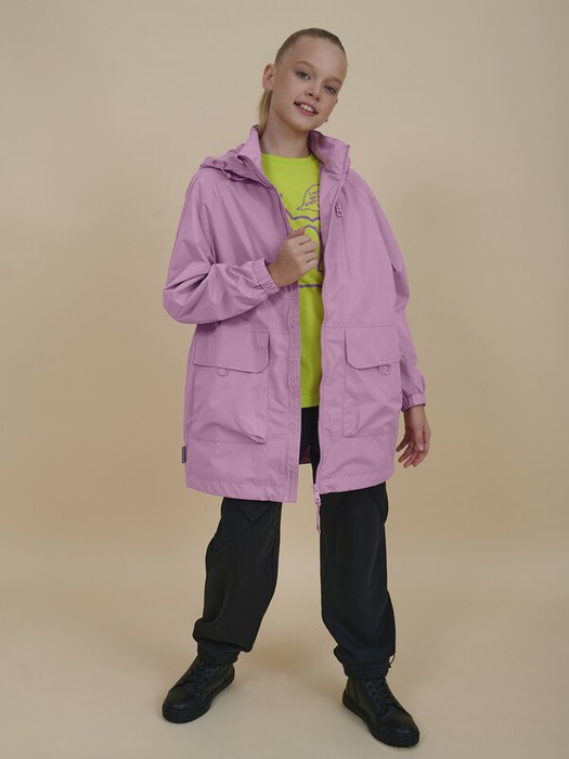 Ветровка для девочки с температурным режимом не ниже +10°С прямого, свободного силуэта.  Рукав реглан имеет мягкую форму. Такой фасон подходит и замечательно смотрится на фигурах любого типа. Ткань верха бархатистая, очень приятная на ощупь, с peach-эффектом. Мембранная ткань хорошо защищает нижние слои одежды от намокания. Структура мембранной ткани позволяет коже дышать - ребенок легко двигается и не переохлаждается. Изделие сохраняет первоначальный внешний вид даже при активной носке. Водоотталкивающая пропитка или  DWR (Durable Water Repellent) – «устойчивое водоотталкивающее покрытие» - защищает от промокания под дождем: материал не утяжеляется под воздействием влаги, позволяя свободно пропускать воздух. Подклад из хлопка по стану и в капюшоне, в рукавах из полиэстера для легкого надевания.