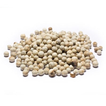 Аромат белого перца более тонкий, довольно сильный, вкус менее жгучий, чем у черного.Как приправу белый перец применяют как в целом виде (горошком), так и в молотом. Его кулинарное использование близко применению черного перца, но есть и исключения: белый перец не кладут в сладкие блюда и напитки. Пряность особенно хороша там, где жгучесть и острота черного перца была бы неуместна.  Белый перец горошком оттеняет вкус различных блюд из мяса, рыбы, овощей: супов, заливного, отварного филе и др, а также используется в маринадах и светлых соусах. Молотый белый перец добавляют в супы, салаты, соусы, мясные и рыбные фарши, кладут в шницели, ромштексы, отварное мясо (говядину, телятину) и другие горячие вторые блюда.  Белый перец горошком вводят в начале тепловой обработки, а после проваривания извлекают, особенно если готовится второе блюдо или подлива. Молотому белому перцу долгая тепловая обработка нежелательна, это может придать блюду горечь и неприятный запах. Размалывать перец лучше непосредственно перед приготовлением пищи, а закладывать его в блюдо следует за несколько минут до окончания тушения или варки. Примерная норма закладки белого перца – до 1 г на порцию. Белый перец хорошо сочетается с горчицей, базиликом, эстрагоном, паприкой, луком, майораном, мятой, розмарином, тимьяном, имбирем, можжевельником и другими пряностями; входит в состав светлых, умеренно жгучих смесей карри. В полезные свойства белого перца входит: улучшение работы желудочно-кишечного тракта, помогает при простудных и острых респираторных заболеваниях, снимает спазмы, стимулирует кровообращение, приводит в норму обмен веществ и способствует более активному сжиганию калорий.