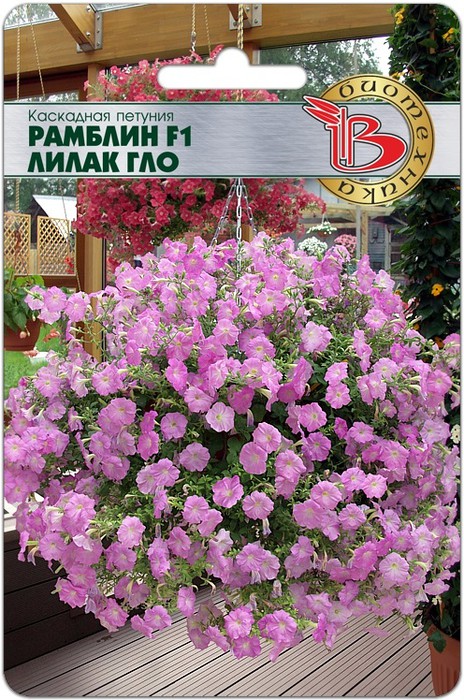Рамблин - настоящая каскадная петуния, одна из самых эффектных крупноцветковых ампельных форм.; Поднимается вверх всего на 35 см, но распространяется в стороны почти на метр.; Высадка на рассаду февраль-март.; Выращивание при 22-24°С.; Выращивание рассады 10-12 недель.; Первичное выращивание сеянцев 4-5 недель.; После пересадки в 10 см горшки выращивание 5-6 недель.; Далее в 25 см корзинах и более. До образования полноценного растения проходит 5-6 недель. Лёгкая хорошо дренируемая почва, pH 5,8-6,0.; Удобрение желательно 25-35 ppm PNK(13-2-13-бСа-ЗМg).; Для рассады оптимальная освещённость 4500-6000 lux.; После образования бутонов желательно увеличение светового дня до 14 часов и снижение температуры до 13-15°С.; Эти петунии весьма эффектны в клумбах, больших подвесных корзинах и контейнерах.;