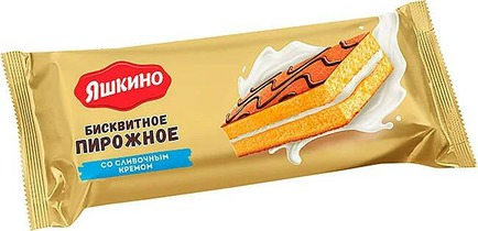 Воздушное бисквитное пирожное с нежным сливочным кремом.