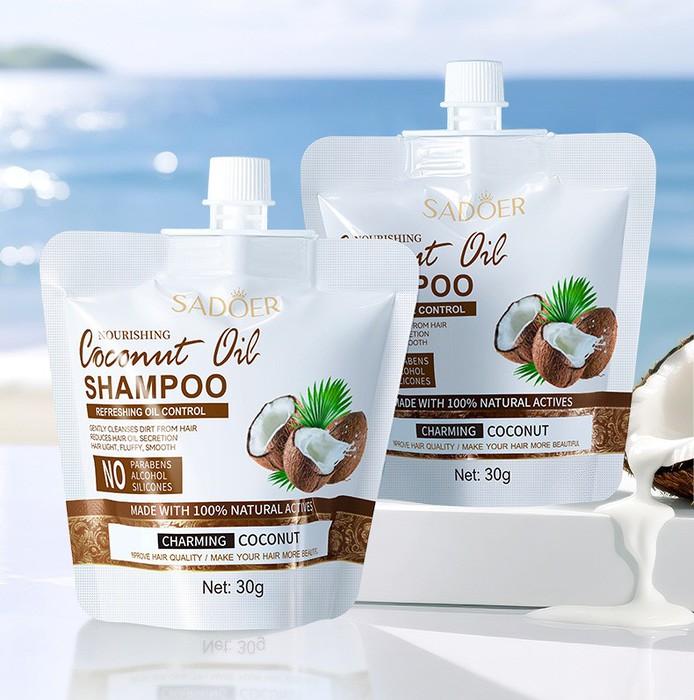 Питательный шампунь для волос с кокосом SADOER, 30 мл.