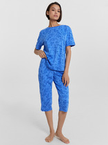 Комплект домашний, состоящий из топа и шорт. Ткань 100% хлопок. Топ на тонких бретелях, фигурная линия груди, на лифе заложены складки, свободный силуэт. Шорты на резинке, короткие, прямого кроя.