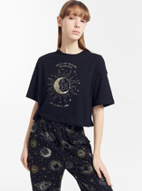 Женская пижама с шортами выполнена из кулирки 100% хлопок. Шорты с притачным поясом на резинке. Футболка полуприлегающего силуэта с декоративной печатью, рукав короткий. Горловина обработана окантовкой.