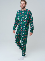 Набор мужской, состоящий из футболки и брюк. Футболка из хлопковой кулирной глади с коротким рукавом , спереди авторский принт. Брюки из набивной кулирной глади на широком поясе с резинкой и шнуром, по бокам удобные карманы.