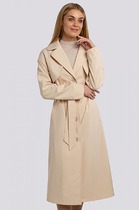 Стильный плащ от бренда D'imma fashion studio коллекции весна/лето 2016, выполненный из гладкого нейлона с мелким рисунком, на шелковистой подкладке. Плащ прямого кроя, с отложным воротником и асимметричным подолом. Спереди плащ застегивается на пуговицы.