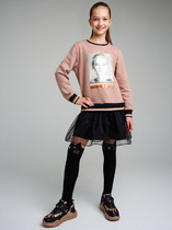 Яркое трикотажное платье без рукавов, декорированное помпонами. Свободный крой, круглый вырез горловины. Без застежки и подкладки.На ребенке представлен размер 140:- Ширина изделия по линии груди 38,5 см- Ширина по низу изделия 111 см- Длина изделия 68 смРазница между размерами составляет 1,5 см.