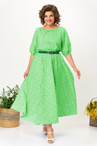 Платье женское полуприлегающего силуэта, с застёжкой на потайную молнию по среднему шву спинки. Перед с нагрудными и талевыми выточками. Спинка с талевыми выточками, средний шов заканчивающийся шлицей. Рукава втачные, одношовные, короткие.