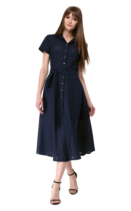 Натуральное платье ришелье на подкладке со сквозной застёжкой по переду на петли и пуговицы.