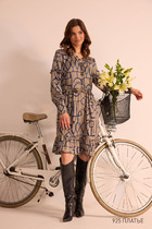 Элегантное женское палтье  из натуральной ткани (лен, хлопок) необычного кроя станет изюминкой вашего гардероба. Платье  прилегающего силуэта, отрезное по линии талии, по передеу застежка на петли и пуговицы, в верхней части платья по полочке прилегание создается за счет талиевых выточек, по спинке - за счет резинки по линии талии.  Юбка-полусолнце с односторонними  складками, по бокам карманы. Плечо спущенное, рукав укороченный, на высокой  манжете на одну пуговицу. Горловина по полочке выполненна в виде цельнокроеной стойки, переходящей в отрезную по спинке. В качестве декора по краю борта идет жабо, переходящее в цветок.  . В комплекте съемный пояс в тон платья. Длина по спинке:-111см. Длина рукава с манжето -51см.