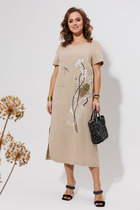 Платье женское трапециевидного силуэта, из трикотажного полотна. Платье по переду цельное, расширенное к низу, по боковым швам карманы полуовальной формы. Спинка платья стачная, расширенная к низу. Рукав-длиной 3/4, втачной, одношовный. Горловина овальной формы. Длина изделия: (50-54)-96см.(56-60)-103 см.,