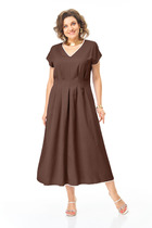 Платье выполнено из однотонной ткани с атласным эффектом в сочетании двух цветов. Платье длинной макси с акцентом в области талии в виде съемного пояса "кушак". Платье отрезное по линии талии. Полочка с горловиной овальной формы. Спинка со средним швом, в верхней части которого обработана капля-разрез с застежкой на навесную петлю и пуговицу. Рукав одношовный длиной 3/4. Юбка формы колокол. В боковых швах юбки обработаны карманы. По талии платье с эластичной тесьмой. В боковых швах лифа обработаны шлёвки, через которые продевается пояс-кушак