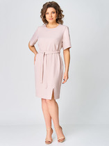 Платье прямого силуэта, длиной за колено, выполнено из вельвета в мелкий рубчик. Полочка платья с отрезной планкой по центру и застежкой на петли и пуговицы. Лиф платья отрезной , со складкой по низу, к срезу которой притачана юбка со сборкой. Полочка лифа с нагрудными вытачками и накладными карманами. Горловина круглой формы обработана воротником-стойкой. Пройма углубленной формы с рукавом рубашечного типа, рукав длинный, одношовный. В боковых швах юбки обработаны карманы.