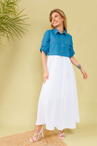 Платье длины миди, полуприлегающего силуэта, отрезное по линии талии.