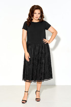 Платье длины миди, полуприлегающего силуэта, отрезное по линии талии.