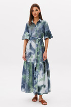 Платье очень женственное, лёгкое, в нем вы будете чувствовать себя леди. Прямого кроя, с воланом по низу, по талии на резинке. Рукав со сборкой, с узким манжетом на пуговица. Округлая горловина подчеркнёт женственные изгибы лица, а для удобства по спинке слёзка на петле пуговице. Съёмный пояс подчеркнёт вашу талию. В этом платье вы будете блистать и собирать восторженные  комплименты в свой адрес.
