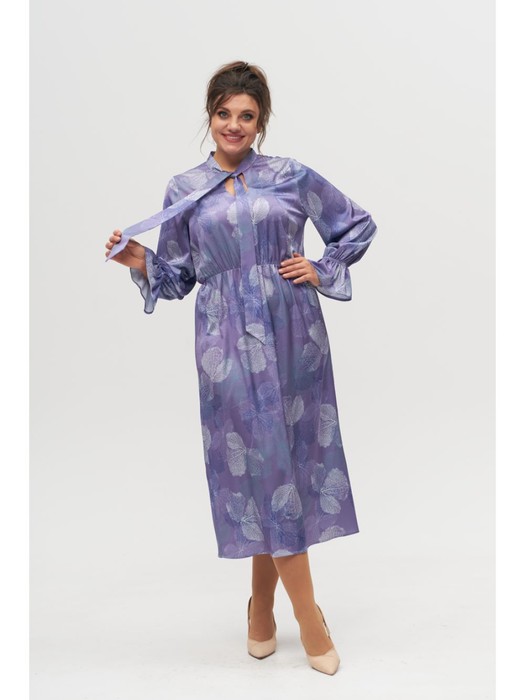 Особенность этого платья - фигурный вырез спереди и горловина, украшенная изысканной притачной стойкой с бантом. Этот акцент придает вашему образу загадочности и утонченности, делая вас центром внимания.