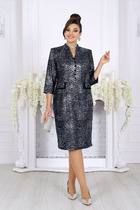 Элегантное платье из эко кожи полуприлегающего силуэта. Модель средней длины с центральной застежкой на пуговицы создает собранный и стильный образ.