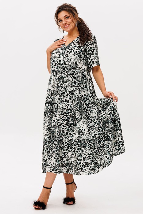 Созданное из лёгкого штапеля, оно словно соткано из воздуха — нежное, дышащее, идеальное для тёплых дней. Его универсальность позволяет ему быть уместным и в городской суете, и на закатной прогулке у моря, и на романтическом свидании.