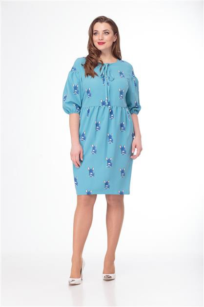 По переду выполнены нагрудные вытачки, нижняя часть платья присборена по талии, на спинке в среднем шве обработана застёжка-молния. Линия плеча спущена, рукава актуального объема, укорочены, со сборкой по окату, низ собран на резинку. Горловина платья округлой формы, с завязками. Платье выполнено в нескольких принтах.