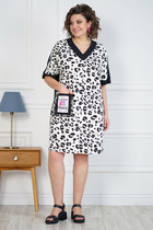 Женское платье из легкой летящей ткани свободного силуэта. Рукав 3/4 со сборкой по пройме и с резинкой по низу рукава. К платью прилагается пояс из той же ткани. Длина платья 126 см