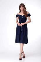 Платье приталенного силуэта длину чуть ниже колена из костюмно-плательной ткани. Вырез горловины квадратной формы. Отрезное по линии талии. Перед и спинка с рельефами. По спинке средний шов, в котором вставлена потайная молния, внизу разрез. Рукав втачной широкий длинный, по окату собран на резинку. Длинный рукав легко превратить в три четверти с помощью резинки, вставленной по низу рукава.