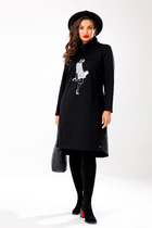 Платье полуприлегающего силуэта, расклешенное книзу. Горловина V-образной формы. Платье отрезное по линии талии. По переду нагрудные и талиевые вытачки. Спинка с рельефами и потайной застежкой молнией в среднем шве. Рукав втачной короткий, со сборкой по низу. В комплекте съемный пояс из основной ткани.