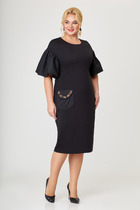 Платье полуприлегающего силуэтавыполнено из полотна черного цвета. Лаконичный и строгий крой позволит Вам создатьмножество вариантов для образов в разном стиле,дополняя образ аксессуарами.Характеристики: полуприлегающий силуэт, отрезное, горловина овальная, рукав втачной, в боковыхшвах карманы, застежка -потайная тесьма молния всреднем шве заднего полотна изделия. Длина 124 см.