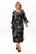 Платье полуприлегающего силуэта с фигурным отрезом выполнено из нежно-розового полотна с принтом белый горох. Характеристики: отрезное, отрез фигурный, горловина V образный вырез, рукав втачной струящийся, низ свободного кроя на подкладке, в боковом шве - потайная молния. Длина платья 127 см, длина 34.