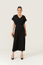 Платье в длине мини. Лиф платья прилегающего силуэта, обработан талиевыми вытачки. Юбка платья пышная, обработаны 2 ярусами воланов. Застёжка - потайная молния по центру спинки. Рука короткий, присборен на резинку, может надеваться на плечо и на предплечье для более игривого образа.