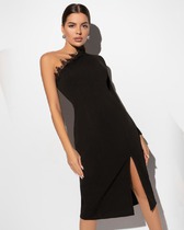 Платье в длине миини. Основная ткань - искуственный шёлк, лиф обработан шифоном, воланы присборены по лифу, застёжка - потайная молния в цвет изделия