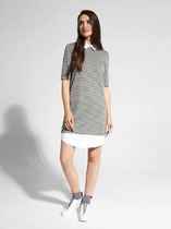 Платье женское из тонкого трикотажного полотна с неоднородной поверхностью. Изделие на подкладке из тонкого трикотажного полотна, до колена. Платье слегка прилегающего силуэта удлинённое с длинным втачным рукавом, вырез горловины полукруглый с узкой планкой.