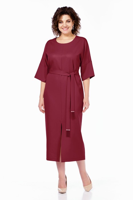 Платье укомплектовано поясом-завязкой из основной ткани с декоративной металлизированной бахромой на концах.