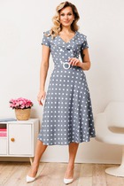 Форколи – платье прямого силуэта из легкой плательной ткани двух цветов. Вырез горловины – круглый. Рукава втачные 3/4 с широкими присборенными воланами. По спине имитация застёжки с декоративными пуговицами. Низ платья украшен присборенным воланом на юбке. Воланы на рукавах и юбке платье выполнены из легкой ткани красного цвета с принтом гороха черного цвета. Платье подходит, как для работы в офисе, так и для праздника. Будьте неподражаемой вместе с "