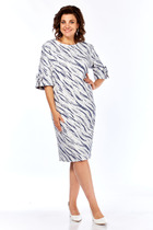 Хлопковое платье с акцентом по переду. Силуэт платья вытягивает фигуру. По переду выполнена печать "серебрянной пленкой". По спинке молния с декоративной лентой.