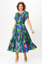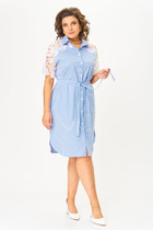 Платье рубашка прямого силуэта с отложным воротником на стойке. По переду – нагрудные выточки, карманы в боковых швах. Застежка в виде планки на декоративных пуговицах-до талии и потайные пуговицы-ниже талии. Ассиметричная деталь-пояс на полукольцах. Фигурные разрезы в боковых швах. По спинке фигурная кокетка, центральный шов со встречной складкой в верху. Рукав в точной 1-шовный, длинный с застёжкой на планку спереди, со складкой по низу и манжетой